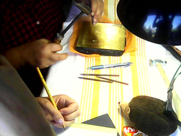 Teaching jewelry and enameling classes and Etching metal and chasing and Repousse